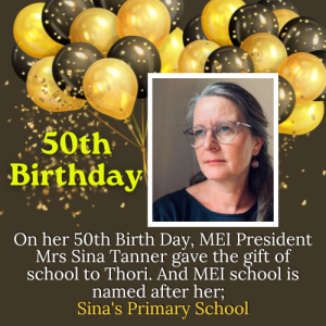 MEI President Mrs Sina Tanner donated to MEI School for the construction of the MEI School building on her 50th birthday. And, MEI School’s block will be named after her “Sina’s Primary School”